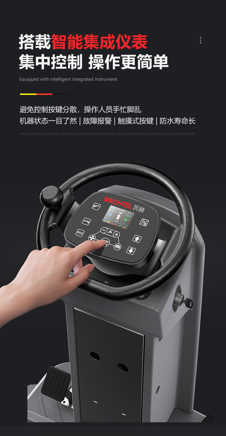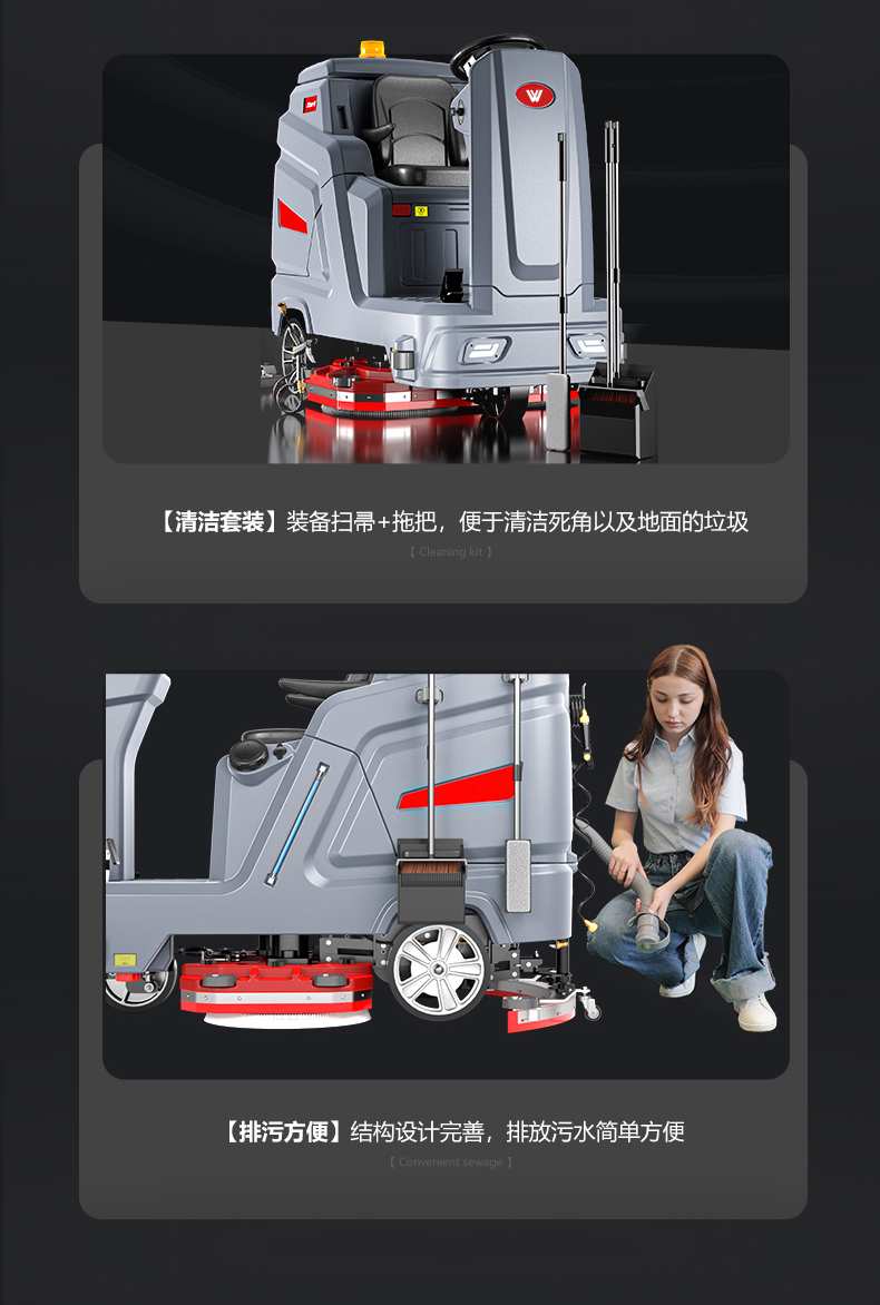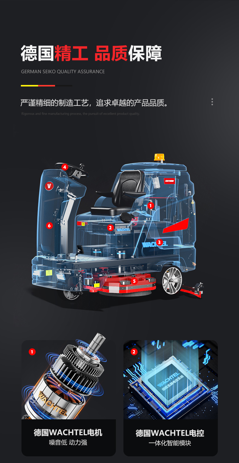品牌:WACHTEL 名稱:大型駕駛式雙刷洗地機(jī) 型號: SX1100 清掃寬度:950mm 清潔效率:8800m²/h 工作時(shí)間:4~5h 水箱容量:185L/154L(清/污) 電池:意大利OM鋰電 電機(jī)::德國瓦赫電機(jī) 整機(jī)重量:370kg 產(chǎn)品尺寸:1660*1130*1380mm 適用清潔場所: 商場 超市 車庫 車間 辦公樓等