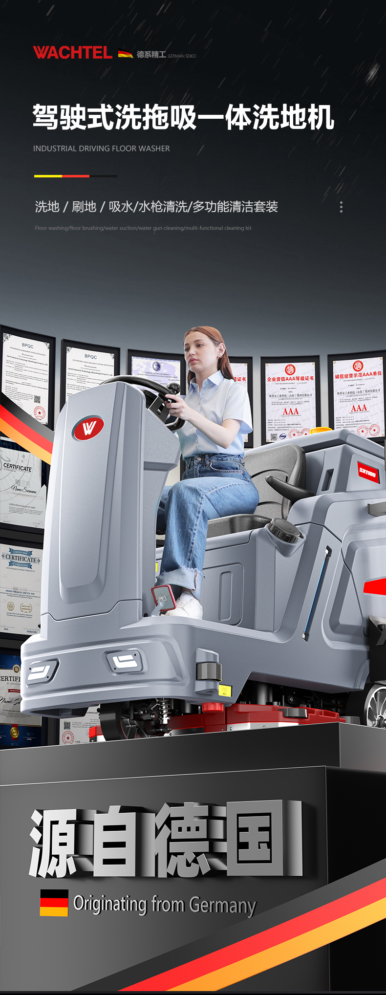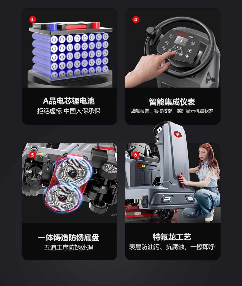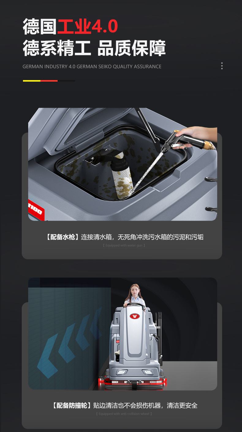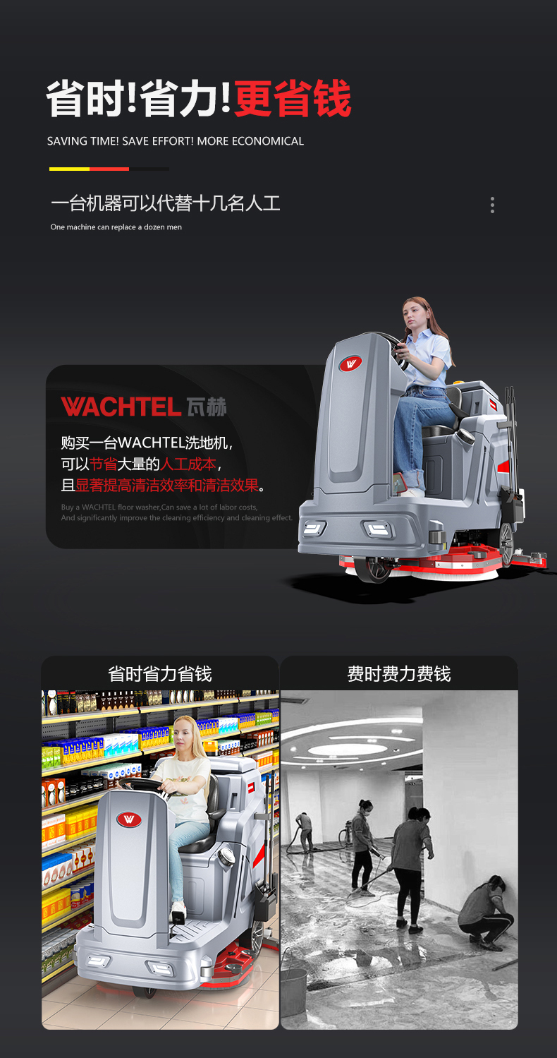 品牌:WACHTEL 名稱:大型駕駛式雙刷洗地機(jī) 型號: SX1100 清掃寬度:950mm 清潔效率:8800m²/h 工作時(shí)間:4~5h 水箱容量:185L/154L(清/污) 電池:意大利OM鋰電 電機(jī)::德國瓦赫電機(jī) 整機(jī)重量:370kg 產(chǎn)品尺寸:1660*1130*1380mm 適用清潔場所: 商場 超市 車庫 車間 辦公樓等