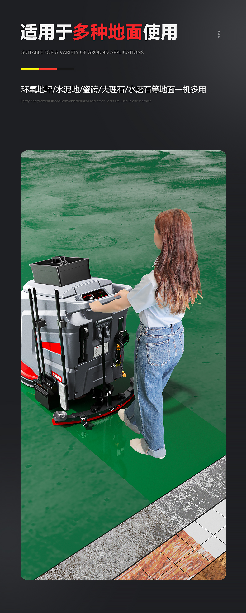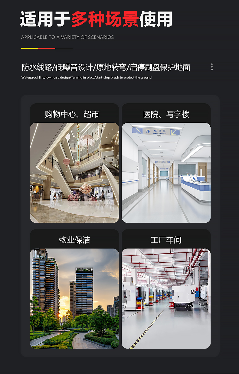 品牌:WACHTEL 名稱:多功能商用手推式洗地機 型號: SX530 清掃寬度:530 mm 清潔效率:2600m²/h 工作時間:3~4h 水箱容量:71L/65L(清/污) 電池:意大利OM鋰電 電機::德國瓦赫電機 整機重量:102kg 產品尺寸:1110*830*1000mm 適用清潔場所: 商場 超市 車庫 車間 辦公樓等