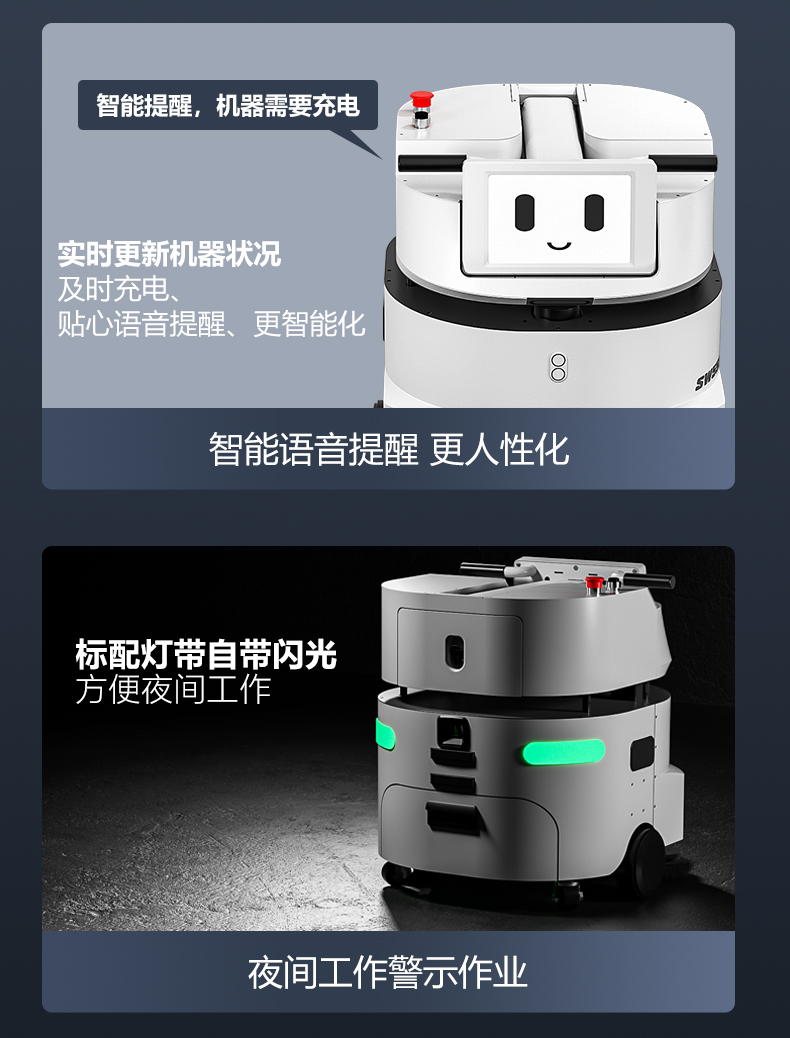 品牌:WACHTEL 名稱:掃拖吸一體智能機器人 型號:SW550 功能:掃地+洗地+吸塵+塵推 特點:自動充電+自動避讓+自動乘梯+斷點續掃 控制方式:自動/人工 外觀尺寸: 615*585*630mm 充電樁尺寸:430*290*440mm 清掃寬度:550 mm 清潔效率:1600m²/h 工作噪音:≤62dB 工作時間:5~8h 電池:24V/50AH鋰電池 重量:85kg 防護措施:激光雷達+超聲探頭+深度攝像頭