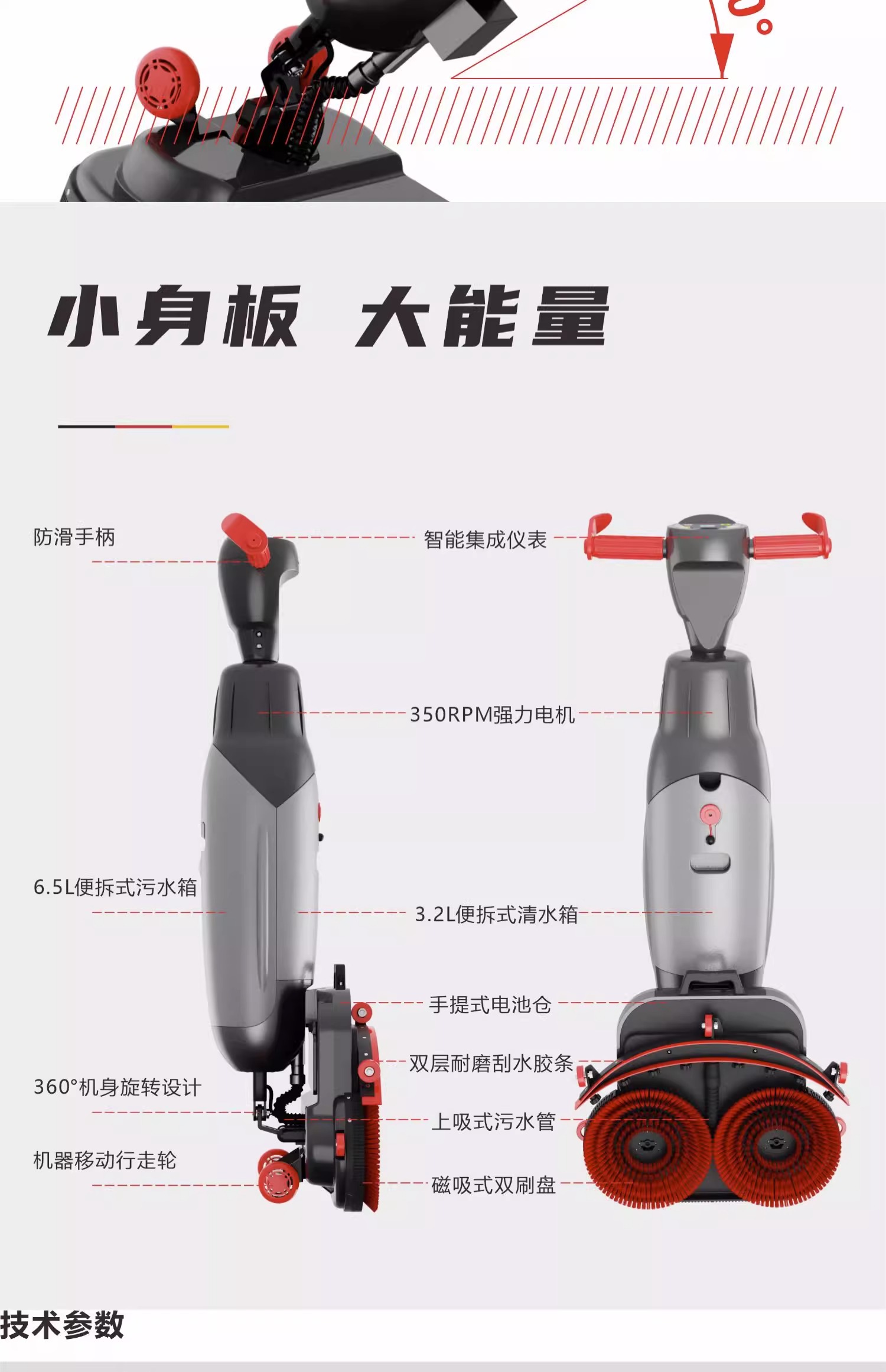清掃寬度:430 mm(雙刷盤)